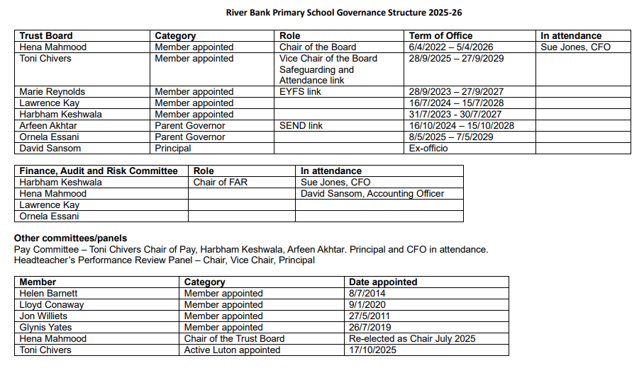 Lawrence brings a wealth of board room experience from a range of voluntary positions with community minded organisations and is excited about supporting Active Education Academy Trust/ River Bank Primary School.