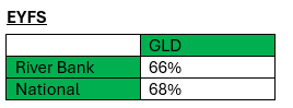 % of children reaching Good Level of Development (GLD) at the end of EYFS